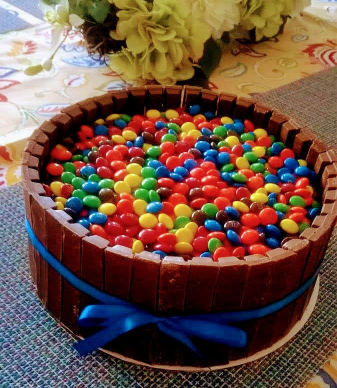 The gluten-free chocolate wafers around the outside create the look of a basket, and the top covered in mini eggs makes it look full of Easter candy.